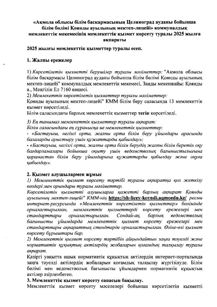 «Ақмола облысы білім басқармасының Целиноград ауданы бойынша білім бөлімі Қоянды ауылының мектеп-лицейі» КММ